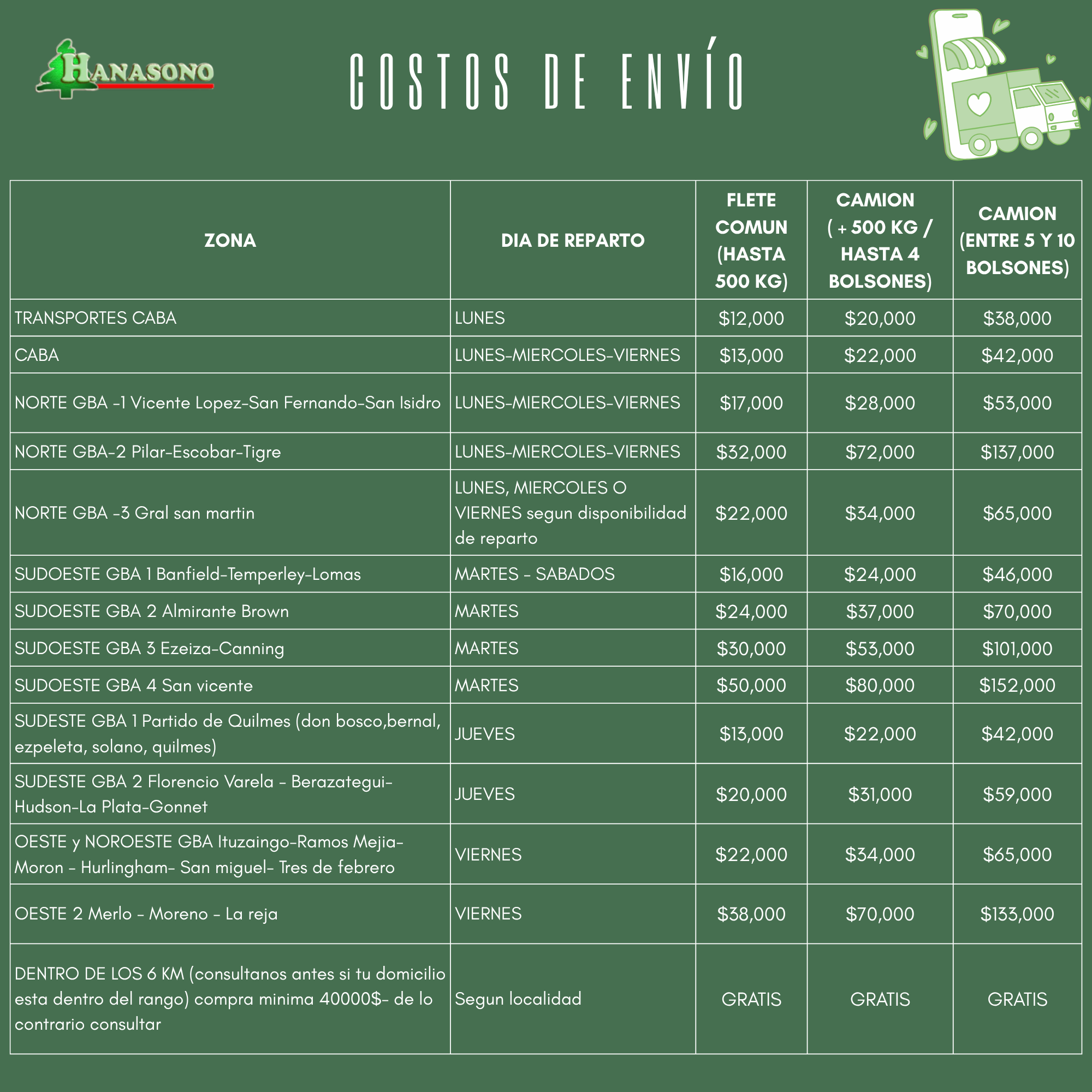 - Los valores informados no incluyen IVA. Si necesitás factura con envío, avisanos.